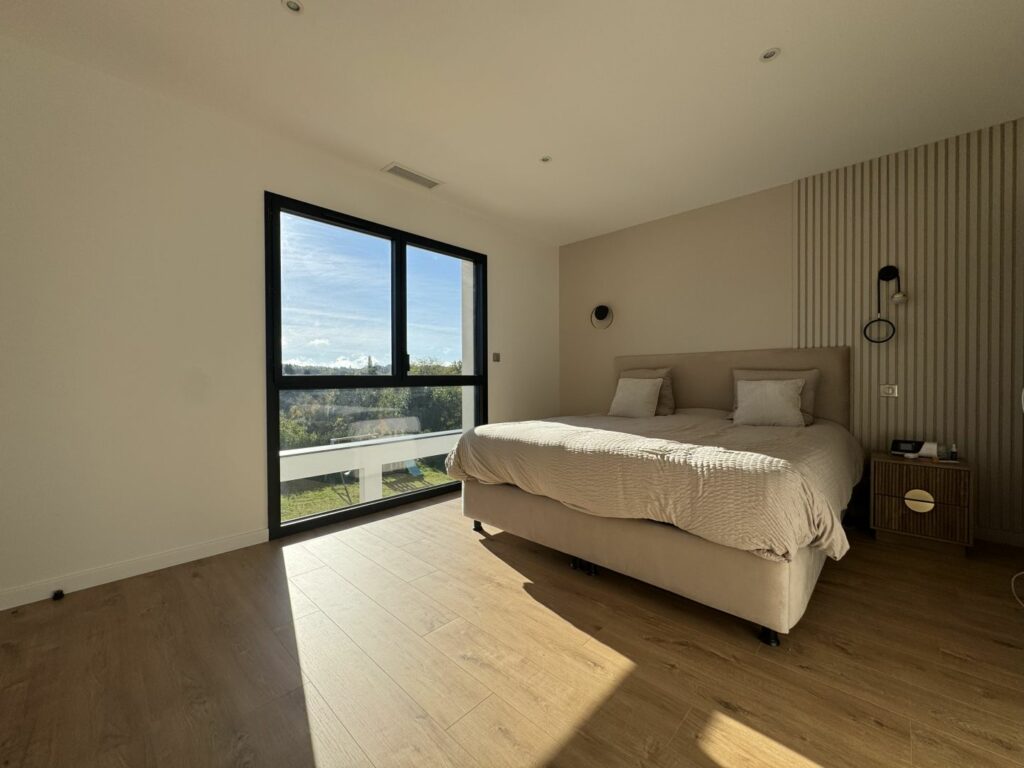 Une chambre invité au rez-de-chaussée, deux chambres et une suite parentale à l’étage et un garage